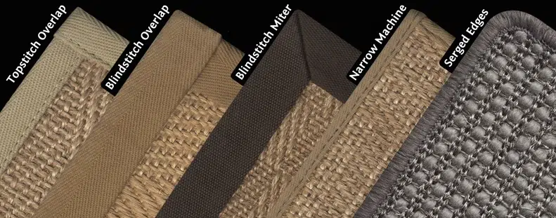 Carpet serging is a premium finishing technique where a serging tape is sewn around the edge of the carpet, creating a luxurious, hand-sewn appearance. It’s commonly used for high-end area rugs and specialty carpets.