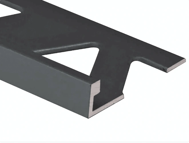 Individual stick of 5/16″ metal flat tile edge in color Satin black. 8 feet per stick.